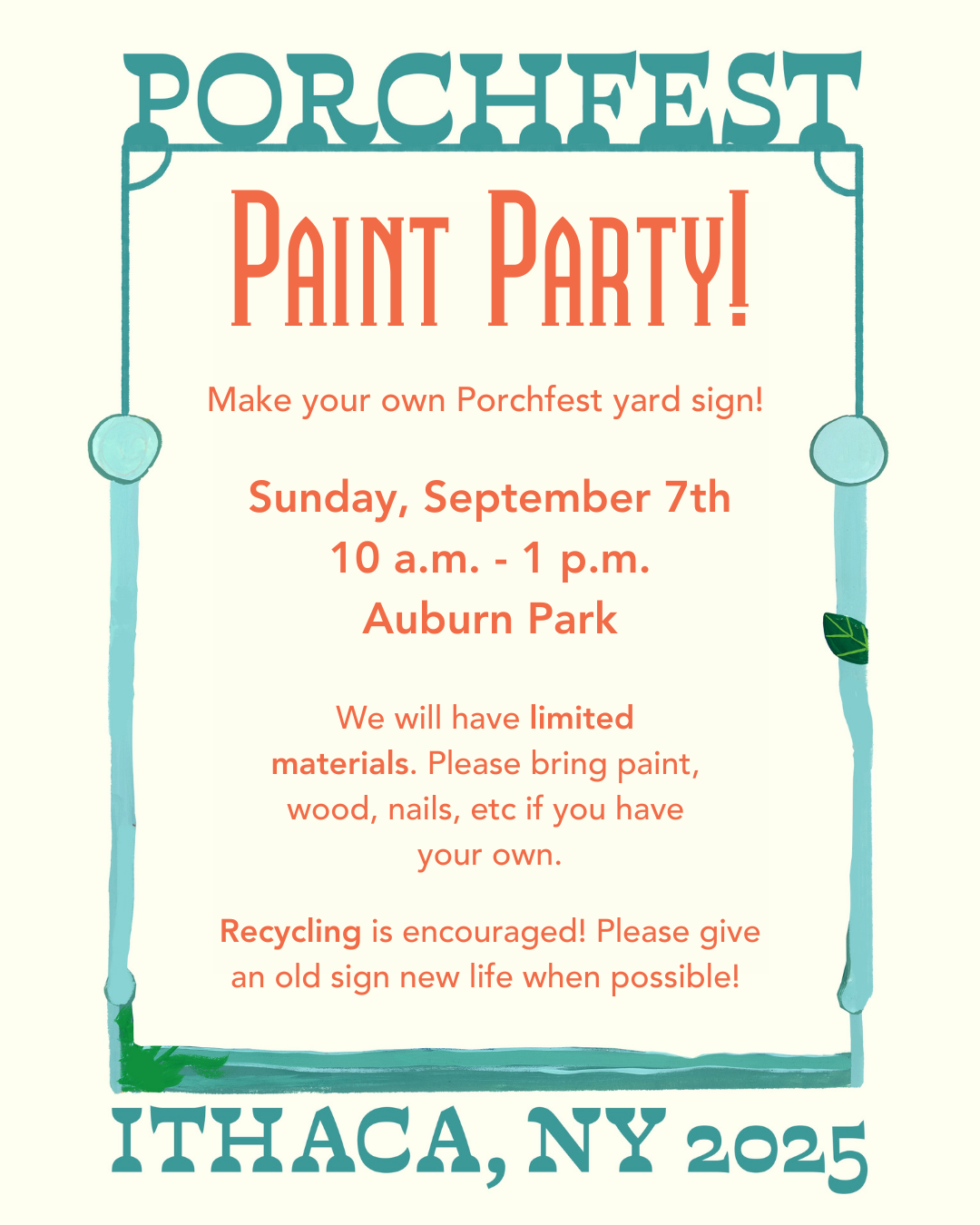 Lots more information to come, but for now we can tell you that Porchfest 2025 will take place on Sunday, September 21 from noon to 6 PM.